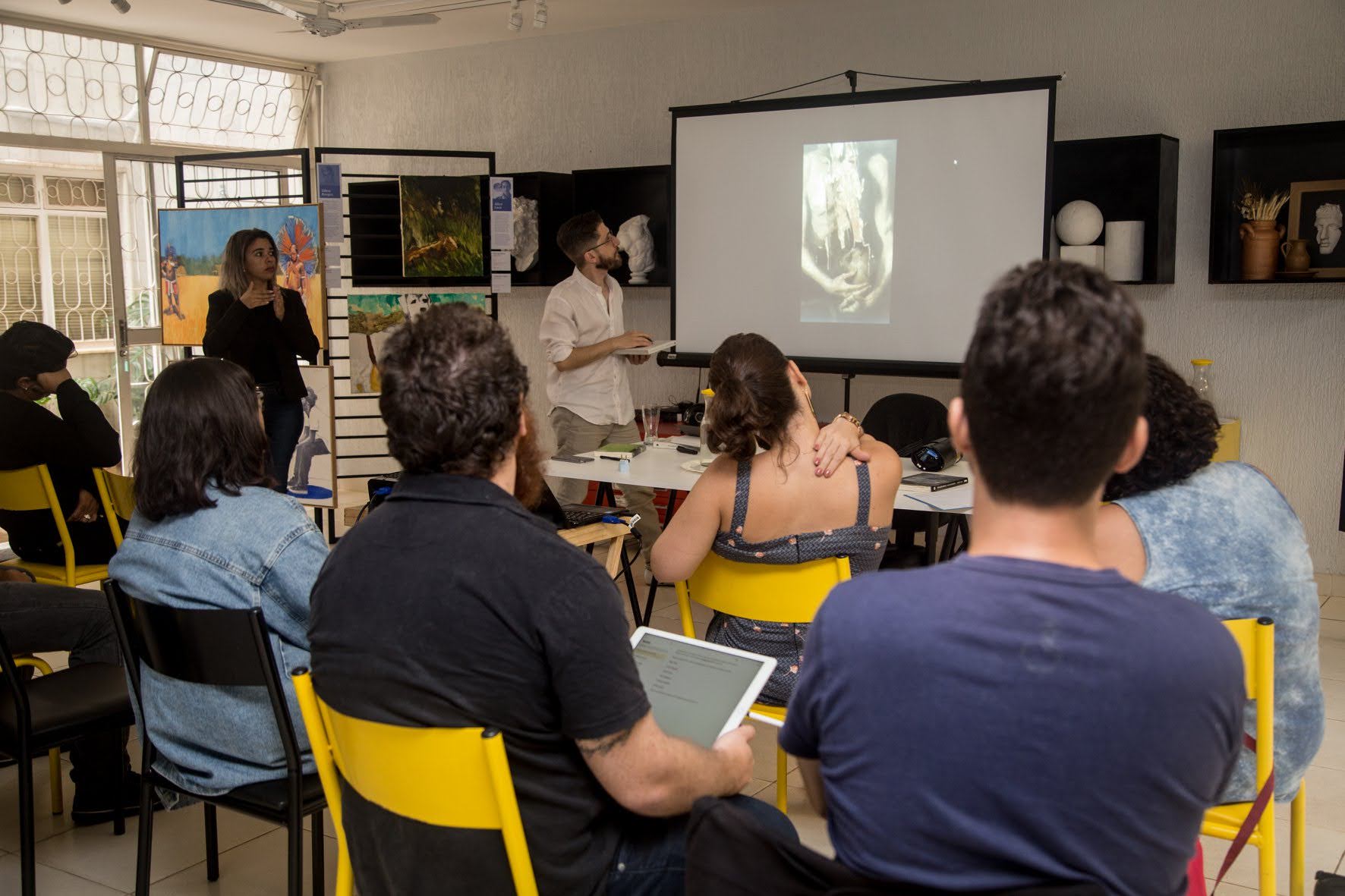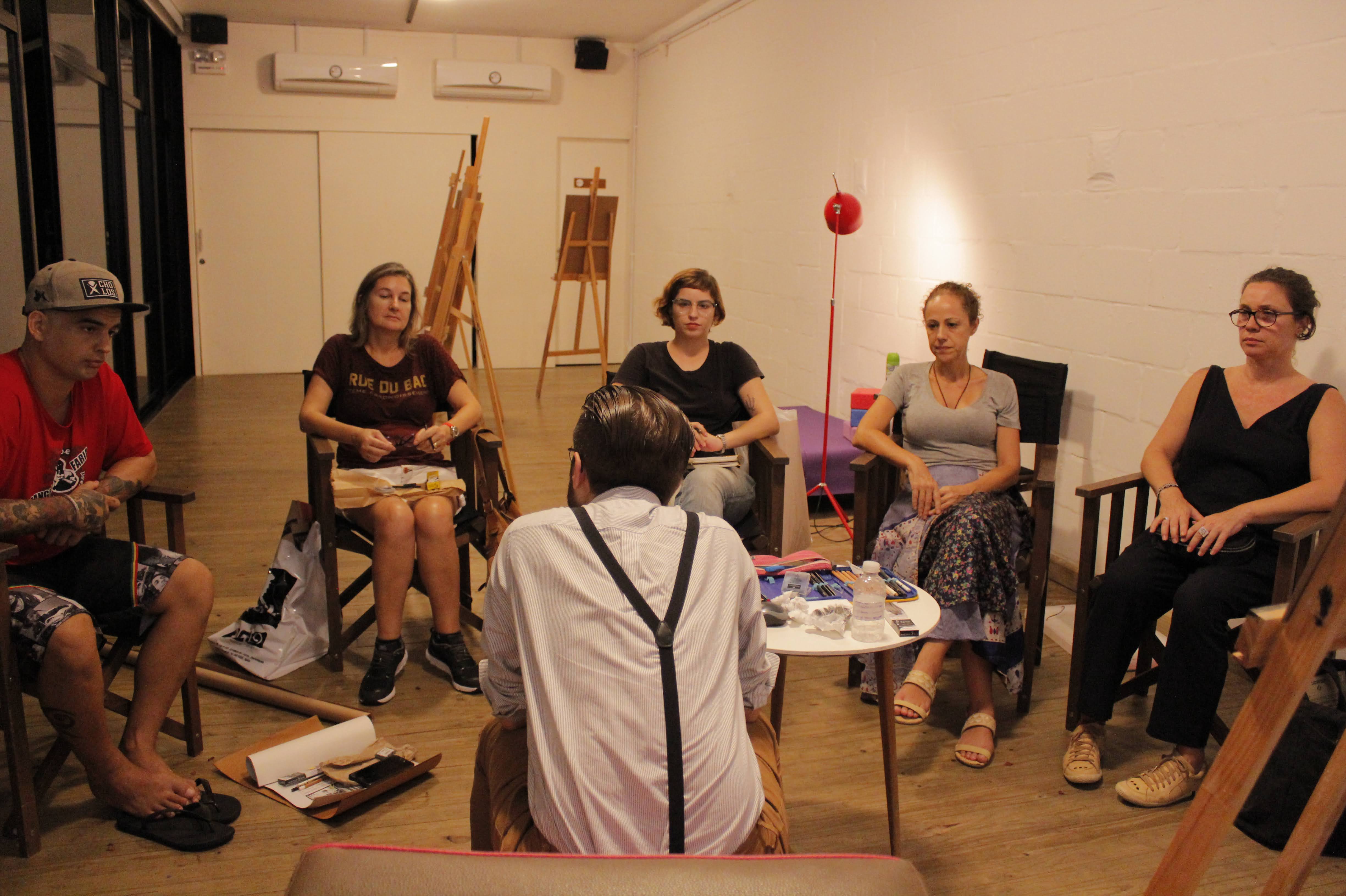“Senti que o curso (o Fazer da Arte ) traz… doa…uma abertura e faz um mergulho intenso conceitual, com muita clareza e rigor, sobre processos do ser-fazer da arte. Ao mesmo tempo que nos interroga ele nos desperta ainda mais pra conexão vida-corpo- sensibilidade- mundo-linguagem/forma e compromisso ético-estético-politico. Sai com sensações múltiplas que vão de incômodos a acomodações, tanta coisa ganha lugar, nome, modo…”